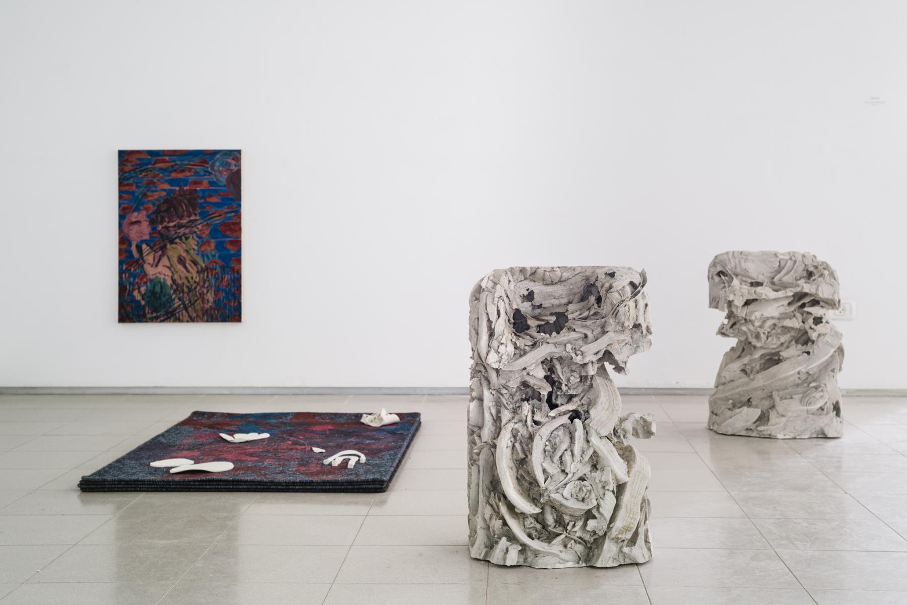 Kritzman’s practice draws on site-based experiences shaped by culturally and historically layered landscapes. In the studio, these encounters are combined with personal events and reconfigured through abstraction, duplication, and fragmentation. Working across painting, printmaking, and sculpture, including ceramics, plaster, bronze, and wood, he develops a spatial, painterly language. His works range from dense, fresco-like surfaces to monochrome reliefs and object-like images, while his sculptures evoke archaeological remnants. Installed together, the works form constellations in which shifting perspectives create a tension between structure and chaos, creating a sense of discovery and perception that offers a delay, a shift in time.
