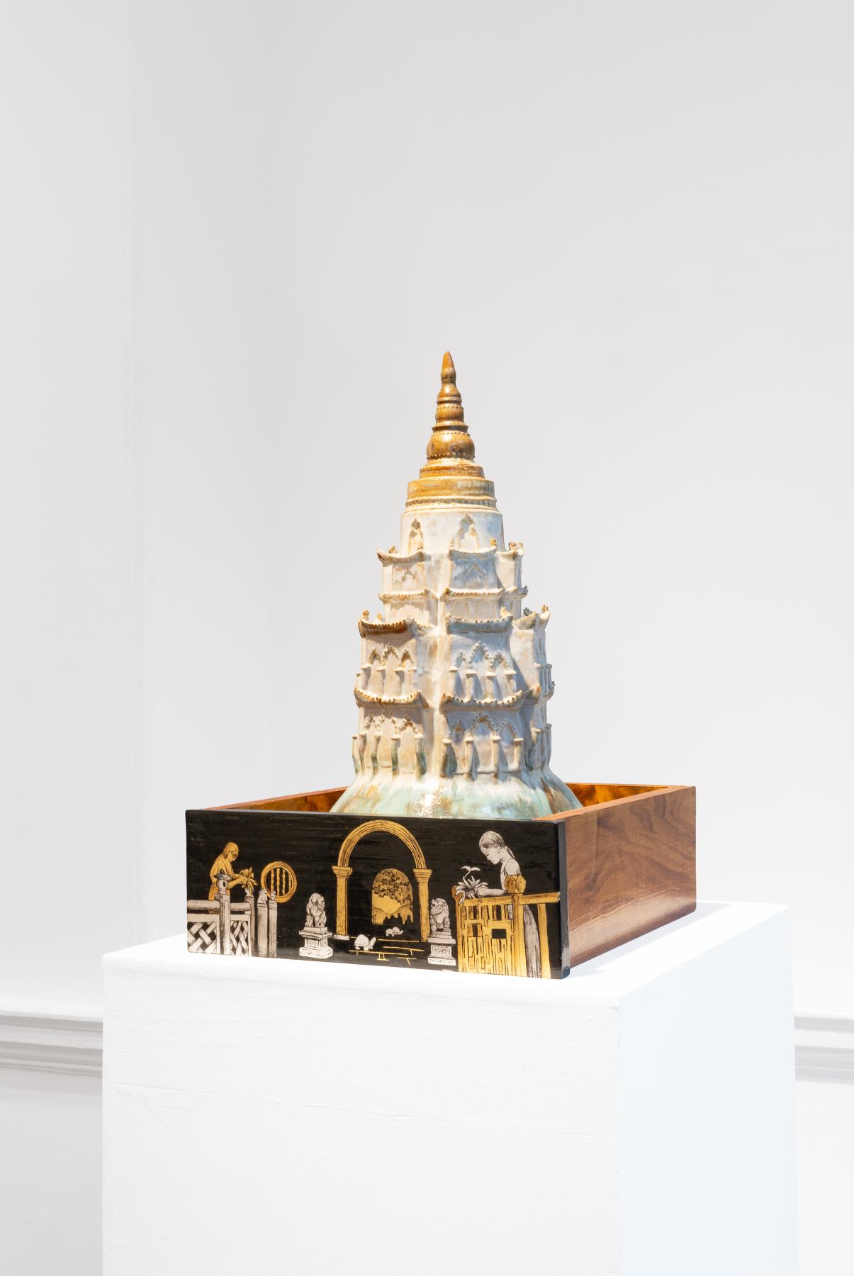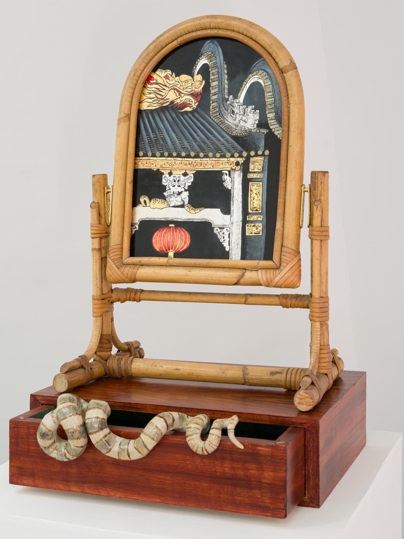 Alison Wing Yin Poon (b. 1996, United Kingdom) works across sculpture, print and ceramic to refract ideas around memory, fiction, heritage and change. Informed by a kaleidoscopic understanding of materials and their histories Alison’s practice aims to construct spaces of belonging. Her works are as precise as they are playful, with intricate processes such as japanning and imitation woodgrain used to render mischievous animal characters and scenes from family photographs.