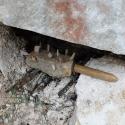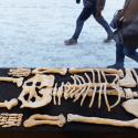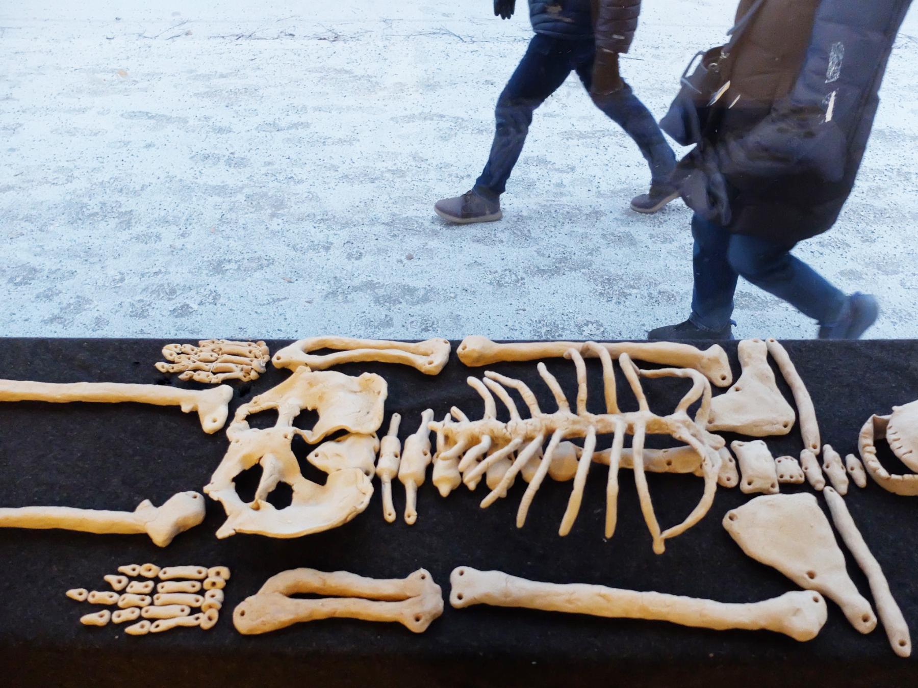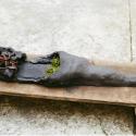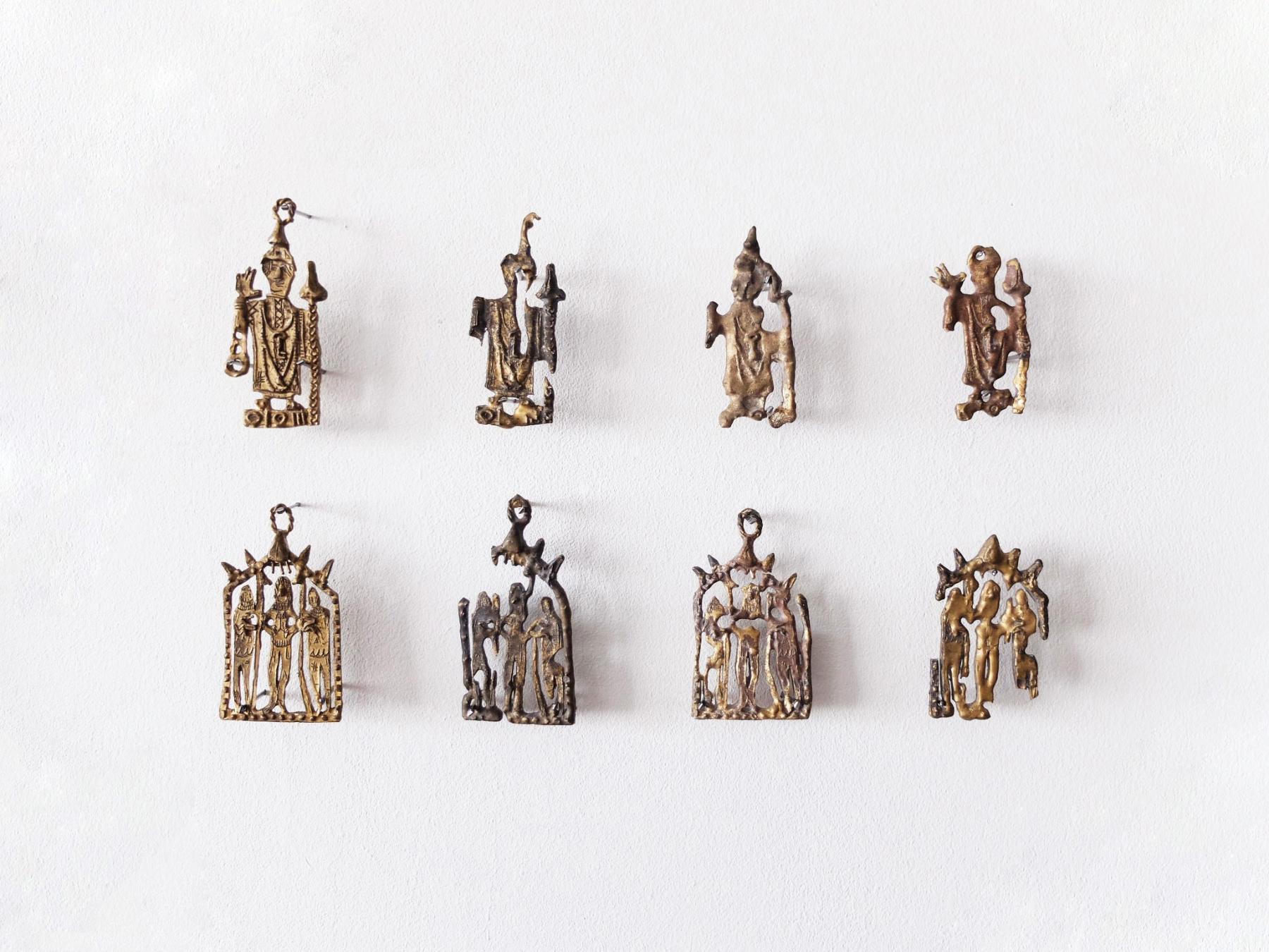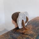 Caitlin Hazell’s practice intertwines the imagined and exaggerated aspects of everyday life with myth, history, and ritual, using absurdity as a tool to draw parallels between real and speculative stories. They are drawn to making objects that feel like props, artefacts from mockumentary, ethnographic studies, or historical reenactments, with a sense of humour. Working across a range of mundane and ancient materials, in a hunter-gatherer approach; dried sea kelp from the Scottish shores, sculptures made using bread flour sourced from the spoil of setting the stones working in London’s only operating heritage windmill, bronze from self-taught casting methods, and stone. These materials reference the changing status of artefacts and relics, mocking the systems that preserve and display them, archaeological digs and the aesthetics/psychology of the souvenir, reflecting material tradition and how we value objects across time.