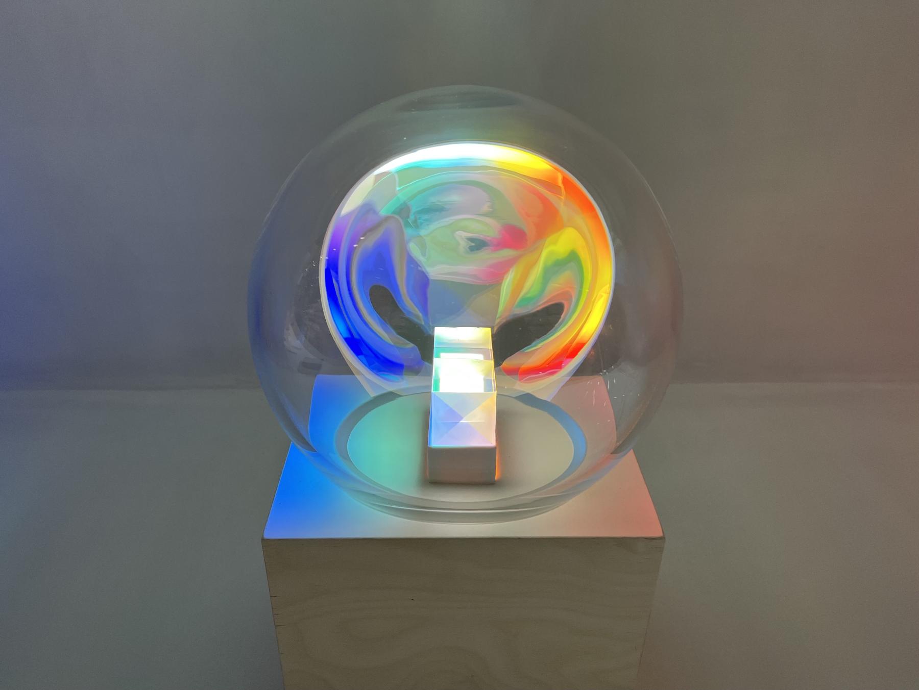 Jo Guile is a multidisciplinary sculptor whose practice is rooted in the alchemical and symbolic properties of glass, its optical complexity, its capacity to reflect and reveal, and its vital yet often invisible role in how we see and interpret the world. She engages with a material that promises clarity, underpins our technologies with certainty, yet can push us into fractured or uncentred spaces. She works at the intersection of art and science, informed by collaborations and exchanges with, among others, Earth Scientists, Ophthalmologists and Physical Chemists.
