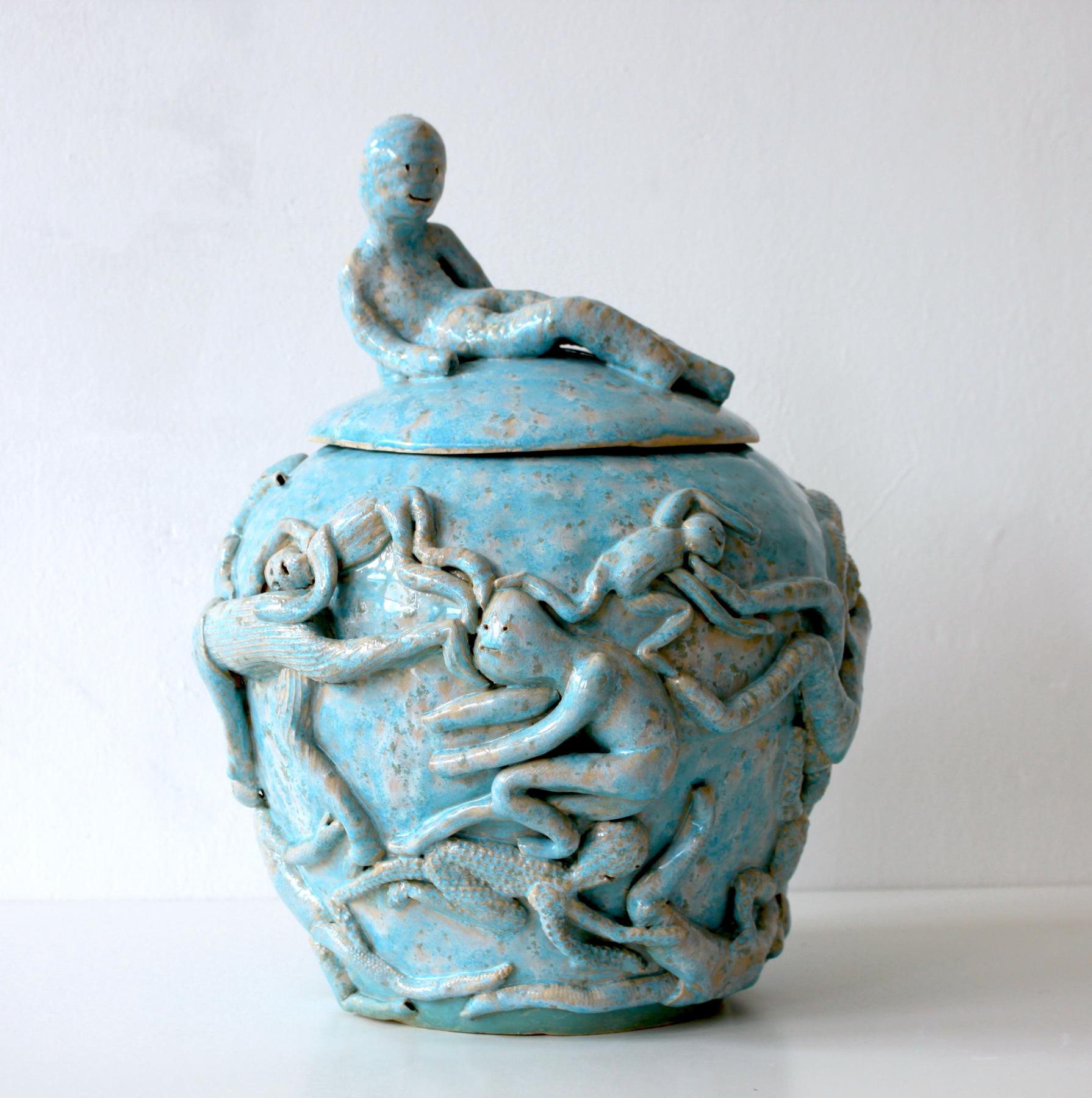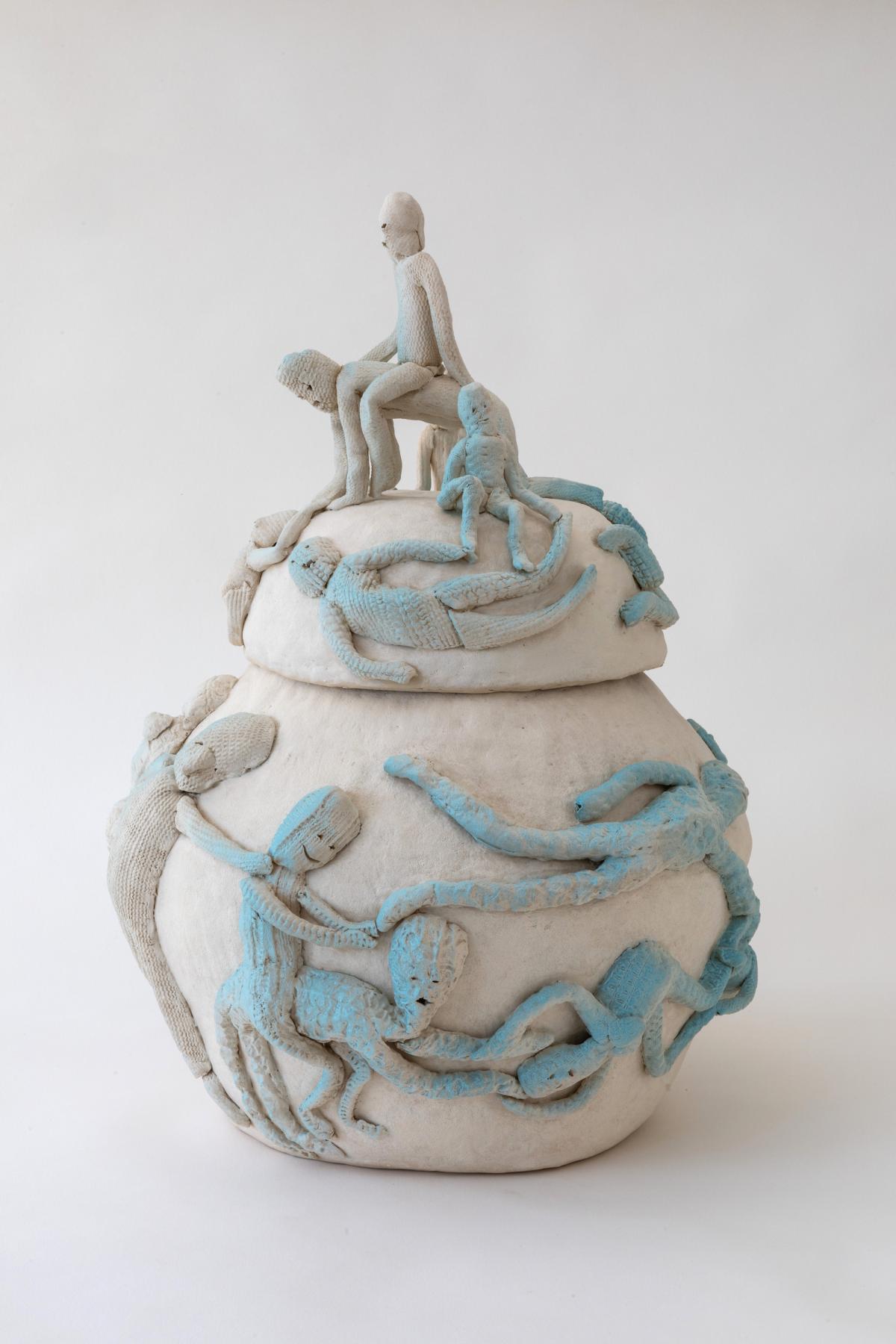 Kim L Pace creates sculptures, drawings and paintings of emotionally charged beings. She draws on wide-ranging sources—from medieval relief carvings and amphorae, to Eastern European folk culture and underground comics—to depict figures that render the inner self visible.