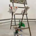 This installation was made during a week's residency at Chapel Arts Studios, Andover, Hampshire. The verge is an undefined space and the hinterland of the corridors we rush along. It is between the countryside and the road. What goes on there is only fleetingly glimpsed out of the corner of an eye and soon forgotten. It is a non-place for those who pass by, but not for the inhabitants, exposed to the fleeting glance of those passers-by. The work begins to explore imagined futures for the inhabitants of this liminal space by building a group of assemblage sculptures from a mixture of roadside and agricultural detritus, as well as discarded domestic bedding. The soundscape in the space is assembled from the artist's field recordings.