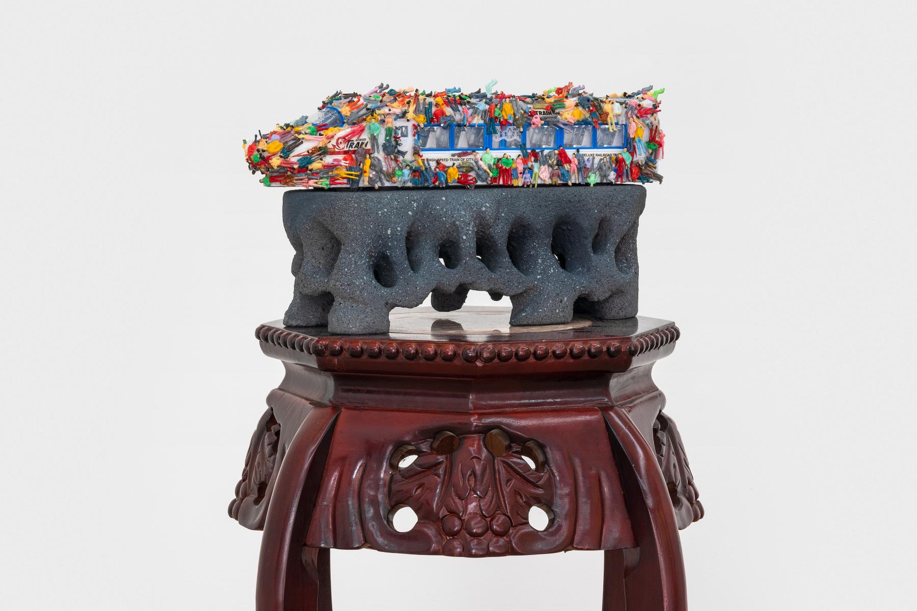 Working with ready-made objects and prefabricated assets, she is interested in the semantic surplus of models and miniatures as surrogates of existing and imagined structures, which generate speculative narratives about the world at large that expand our normative fields of view. Drawing from decorative, architectural, culinary, and botanical art traditions, her work examines the plasticity of meaning that emerges between objects, their makers, and their users, reflecting on how histories and heritage are continually remade to satisfy changing narratives and consumption desires. Using adaptive and imitative processes of carving, casting and modelling, her practice assembles fragments of scaled worlds to produce referential encounters with objects and spaces that stage and shape the everyday.