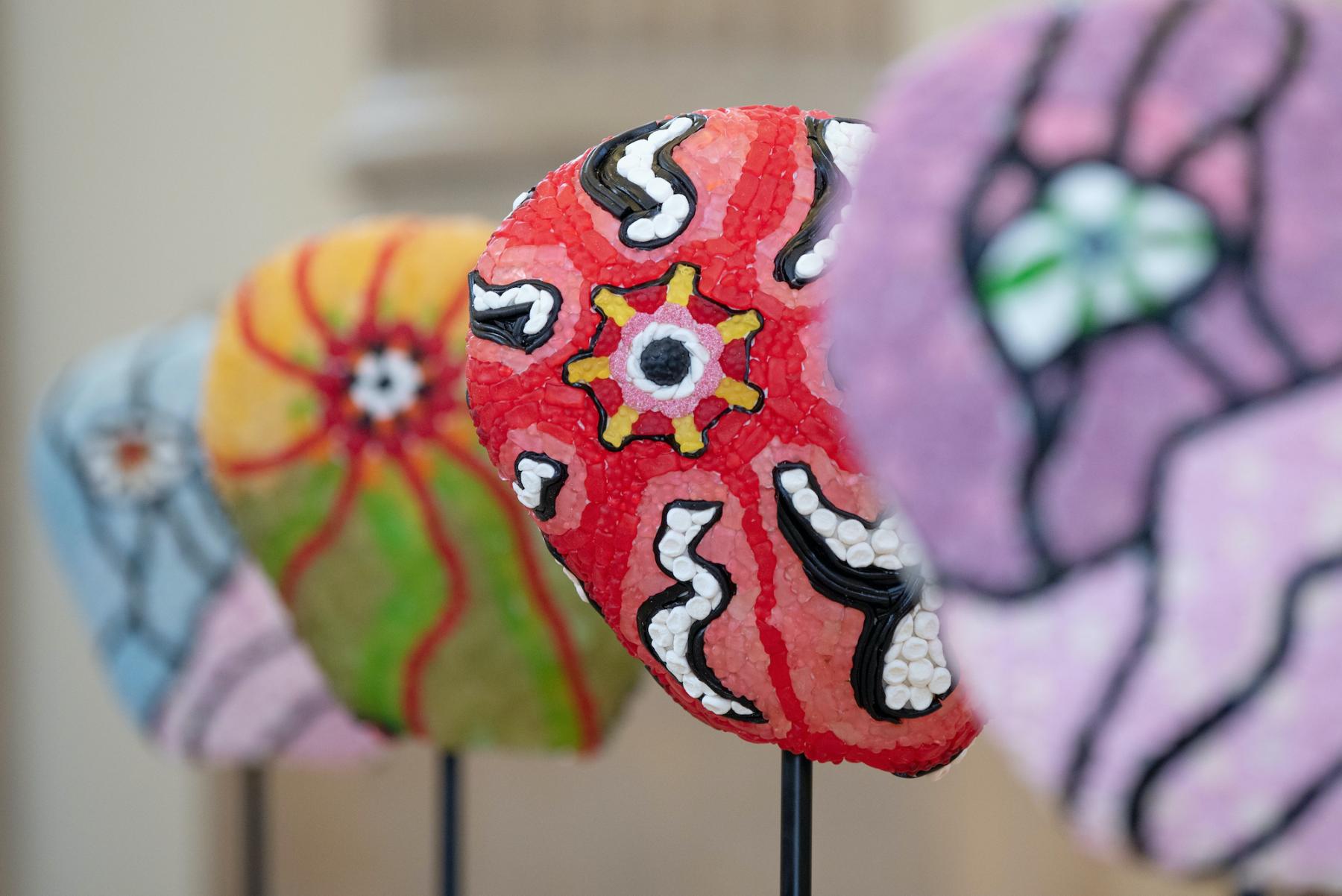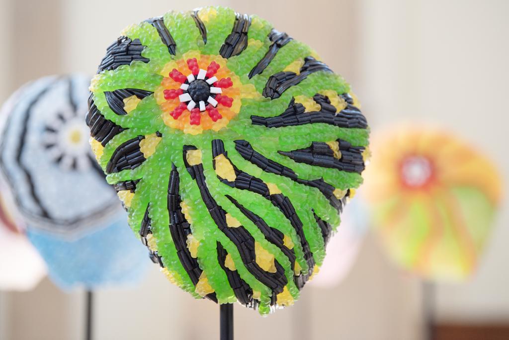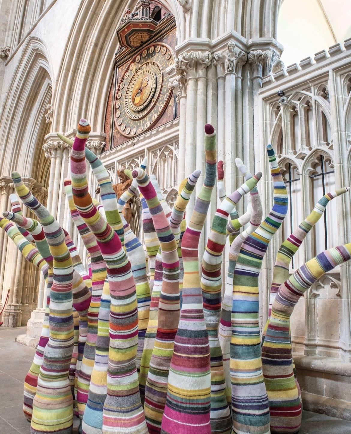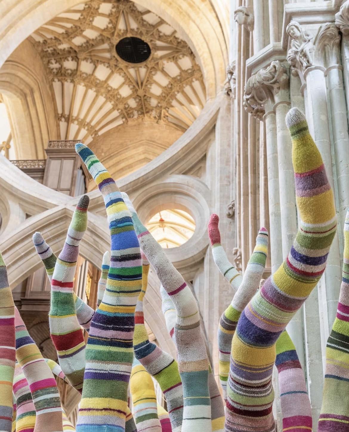 Her practice is playful - she often uses familiar materials in unfamiliar ways, and magnifies small, natural forms to a human scale, bringing our attention to the unseen and unnoticed. In this way she seeks to emphasise we are all essentially part of the same matter - part of nature, not apart from it - something we tend to forget, to our own cost, and to that of the environment around us.