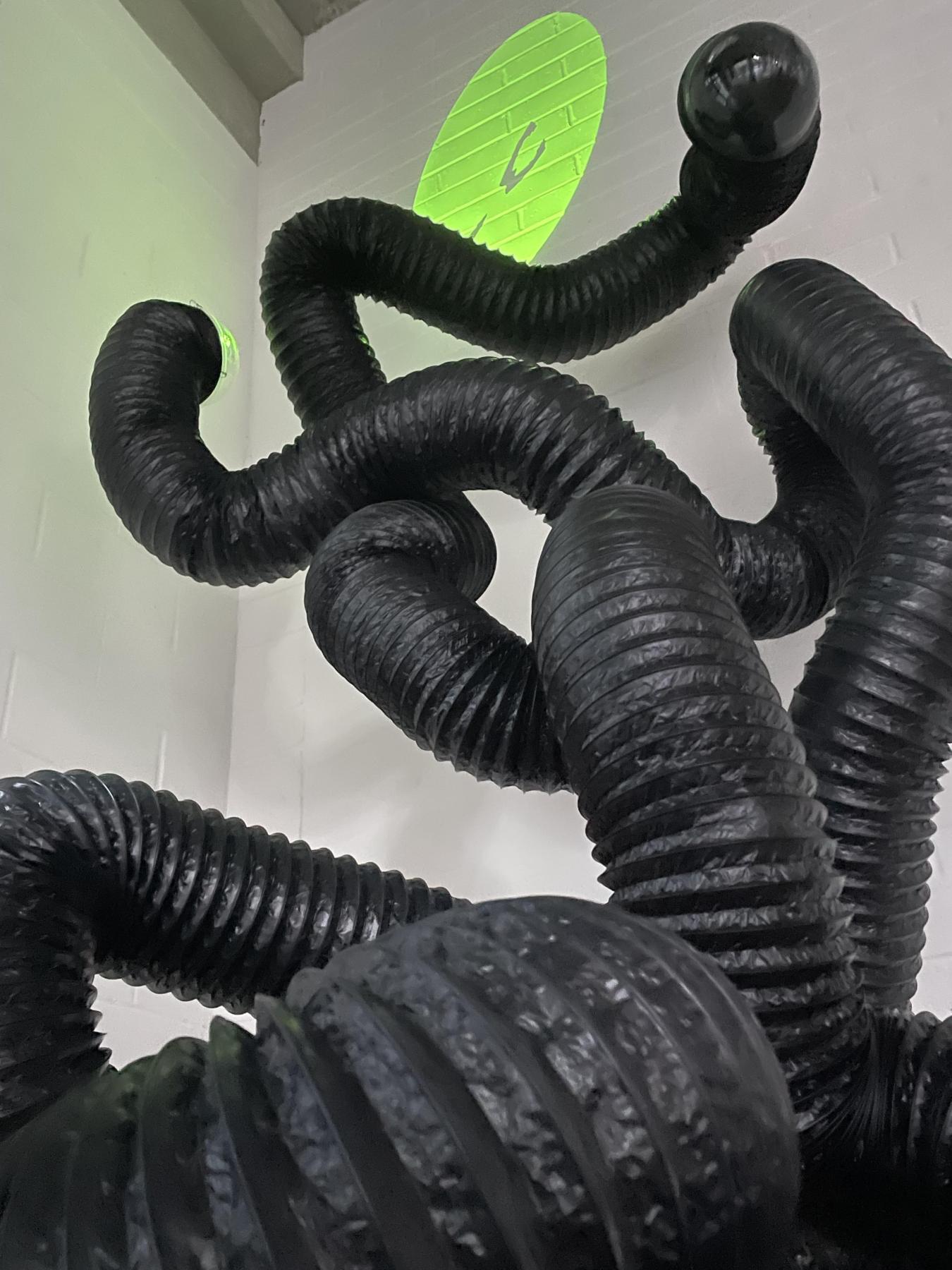 Vermigraphia, 2023 195 x 155 x 155cm Video installation / screen, aluminium and soil